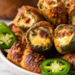 - Prepare Jalapeños: Slice each jalapeño in half lengthwise and carefully remove the seeds and membranes to reduce the heat level. Set aside.