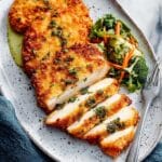 - 2 large boneless and skinless chicken breasts (sliced horizontally to create thin cutlets)