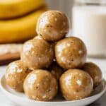 Keywords: banana protein balls, no bake snack, healthy snack, protein balls, energy bites, gluten free, no cook recipe, quick snack