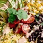 PrintBlack Bean Burrito Bowl with Roasted Corn and Chipotle Sauce Recipe