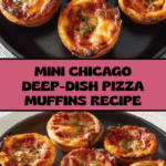 Chicago Deep-Dish Pizza Muffins bring the rich, cheesy goodness of deep-dish pizza into a convenient, bite-sized treat. Perfect for parties or a fun twist on pizza night, these muffins are packed with Italian sausage, three kinds of cheese, and classic pizza flavors.