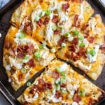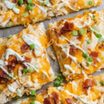 This Chicken Bacon Ranch Flatbread is a quick and delicious meal featuring crispy flatbread topped with creamy ranch dressing, melted mozzarella and cheddar cheese, tender shredded chicken, and savory bacon bits. Garnished with fresh green onions, it’s perfect for a satisfying lunch or dinner with minimal prep and oven baking.