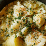This comforting Chicken, Leek and Potato Soup combines tender chicken breast pieces, sweet leeks, and baby potatoes simmered in rich chicken stock. Enhanced with fresh thyme, garlic, and served with creamy sour cream and fresh dill, this hearty soup is perfect for a cozy meal. The gentle sautéing of chicken and vegetables followed by simmering creates a flavorful, warming dish that’s easy to prepare and satisfying.