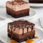 Indulge in these decadent Chocolate Mousse Brownies featuring a rich, fudgy brownie base topped with a light, airy chocolate mousse. This dessert combines the dense, chocolaty goodness of brownies with the smooth, creamy texture of mousse, finished with an optional drizzle of chocolate syrup for extra sweetness and presentation.