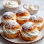 Coconut Cream Buns are soft, pillowy homemade delights filled with luscious whipped coconut cream. These decadent treats combine a fluffy bread bun with a sweet coconut filling, perfect for any occasion.
