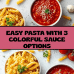 This pasta recipe offers a delightful twist with three colorful sauce options: tomato, cream, and basil pesto. It’s a simple way to enjoy vibrant flavors and create a dish that suits your mood or occasion.