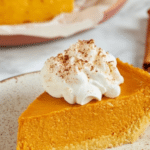 8. Cool and serve: Allow the pie to cool for 10 to 15 minutes before slicing. Serve warm or chilled, optionally topped with whipped cream, crushed pecans, or a sprinkle of cinnamon. This pie offers a delicious, crustless, and protein-rich alternative to traditional pumpkin pies.