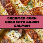 Keywords: creamed corn orzo, salmon recipe, Cajun salmon, creamy pasta, one-pan dinner, easy salmon dinner, comforting meals, seafood and pasta, garlic orzo, fresh corn recipe