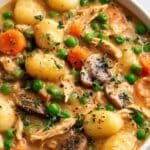 Keywords: Creamy chicken pot pie, chicken gnocchi recipe, gluten-free pot pie, easy stovetop pot pie, comfort food, creamy chicken casserole