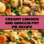 This Creamy Chicken and Gnocchi Pot Pie is a cozy, comforting dish perfect for chilly evenings. It combines tender chicken, hearty vegetables, and pillowy gnocchi in a rich, creamy sauce that’s sure to please the whole family.