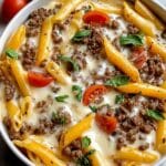 PrintCreamy Rotel Pasta with Ground Beef Recipe