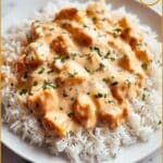 8. Serve: Plate the cooked rice, top with the creamy smothered chicken and sauce, and garnish with fresh chopped parsley for a bright, fresh finish.