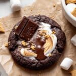 These Double Chocolate S’mores Cookies combine the nostalgic flavors of s’mores with rich, fudgy double chocolate cookies. Perfectly soft and chewy, loaded with mini chocolate chips, marshmallows, graham cracker chunks, and topped with dark chocolate pieces, these cookies are an indulgent treat that capture the essence of a campfire classic in every bite.