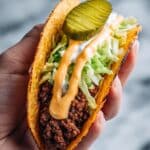 These smash burger tacos are best enjoyed fresh for maximum crispness and flavor. If you have leftovers, store components separately: keep cooked patties and tortillas wrapped in foil in the refrigerator for up to 2 days, and burger sauce in an airtight container for up to 3 days. Reheat patties in a hot skillet to restore crispness and warm tortillas in a dry pan or microwave briefly. Assemble just before serving.
