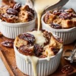 - Combine Bread and Custard: Pour the custard evenly over the brioche cubes, gently stirring so every piece is coated. Fold in the chopped candied pecans and toasted hazelnuts. Transfer everything into a greased baking dish or divide into individual ramekins. Let it rest for about 20 minutes to allow the bread to fully absorb the custard.