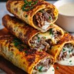 French Dip Tortilla Roll Ups are a delicious twist on the classic sandwich, combining tender roast beef and melted cheese wrapped in warm tortillas. Served with a flavorful au jus dipping sauce, they make for a perfect appetizer or easy meal.