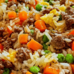 This French Onion Beef and Rice recipe combines rich caramelized onions, seasoned ground beef, and tender white rice simmered in a flavorful beef stock and French onion skillet sauce. Finished with melted Gruyére cheese and mixed vegetables, it offers a comforting, hearty meal that’s perfect for a cozy dinner.