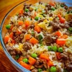 This French Onion Beef and Rice recipe combines rich caramelized onions, seasoned ground beef, and tender white rice simmered in a flavorful beef stock and French onion skillet sauce. Finished with melted Gruyére cheese and mixed vegetables, it offers a comforting, hearty meal that’s perfect for a cozy dinner.