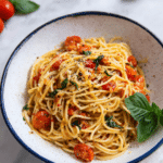 Fresh basil gives the best flavor and freshness to this dish, but if you only have dried basil, use about 1 teaspoon added towards the end of cooking. The flavor won’t be as bright, but it will still add a hint of basil aroma.