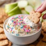 Funfetti Dip is a creamy, sweet, and colorful dessert dip made with cream cheese, funfetti cake mix, and cool whip, perfect for party snacking. It pairs delightfully with apple slices and graham crackers, making it a fun and easy-to-make treat for all ages.