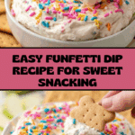 Funfetti Dip is a delightful and colorful treat that’s perfect for parties or a sweet snack. Creamy, sweet, and packed with sprinkles, this dip pairs beautifully with apple slices and graham crackers for easy dipping fun.