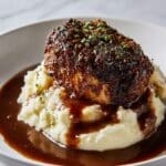 A flavorful and comforting Garlic Herb Chicken served with creamy mashed potatoes and a rich balsamic glaze. This easy skillet recipe features seared chicken breasts rubbed with fresh herbs and garlic, finished with a buttery pan sauce and accompanied by smooth, buttery mashed potatoes.