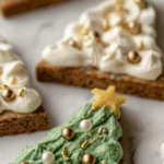 12. Add Festive Decorations: Decorate the frosted Christmas tree cookies with sprinkles, edible sparkling gold or silver dust or glitter, and place a small star decoration at the top of each cookie tree.