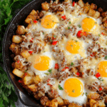 Keywords: breakfast skillet, bacon and eggs, sausage hash, easy breakfast, one-pan meal