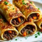 8. Garnish and Serve: Sprinkle fresh chopped parsley over the roll ups for a fresh, herby finish and serve warm.