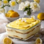 Keywords: lemon tiramisu, lemon dessert, Italian dessert, mascarpone, lemon curd, no bake dessert, lemon syrup, ladyfingers