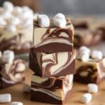 Keywords: marshmallow fudge, chocolate fudge, marshmallow swirl fudge, easy fudge recipe, no bake fudge
