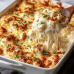 Million Dollar Chicken Casserole is a rich, creamy, and cheesy dish that combines shredded chicken with a blend of sour cream, mayonnaise, three types of cheeses, and a crunchy buttery cracker topping. Baked to golden perfection, this comforting casserole makes a perfect family dinner with minimal prep and maximum flavor.
