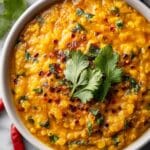 Keywords: coconut dhal, one-pan dhal, red lentil curry, vegan Indian recipe, coconut milk dhal