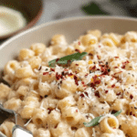 - Garnish and Serve: Plate the pasta and garnish with fresh basil leaves, grated Parmesan, and additional chili flakes for extra flavor and color. Note that the dish will thicken as it cools; to reheat, add a splash of broth or water to loosen the sauce.