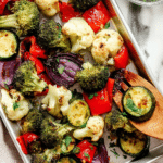 A simple and versatile recipe for oven roasted vegetables using a mix of broccoli, cauliflower, zucchini, bell peppers, and red onion, seasoned with garlic powder, Italian seasoning, and sea salt. These perfectly roasted veggies make a healthy and flavorful side dish with tender textures and a slightly caramelized finish.