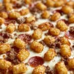 Keywords: pizza casserole, tater tot casserole, ground beef casserole, easy dinner, comfort food, pizza-inspired dish