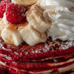 This Red Velvet French Toast is a decadent twist on the classic breakfast favorite, featuring a rich cocoa-infused egg mixture that turns ordinary bread into a vibrant, flavorful treat. Soft, golden, and slightly crisp edges pair perfectly with an optional creamy cream cheese glaze for an indulgent morning delight.