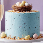 Robin Egg Cake is a delightful layered treat filled with tangy jam and topped with a creamy frosting decorated to resemble a bird’s nest. Its light lemon flavor and blueberry jam balance sweetness perfectly, making it a charming centerpiece for any celebration.
