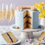 Keywords: Robin Egg Cake, layered cake, lemon cake, blueberry jam, buttercream frosting, spring cake, Easter dessert