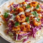 These vibrant Shrimp Tacos with Cabbage Slaw and Lime Crema are a perfect fusion of zesty, spicy, and fresh flavors. Succulent, seasoned shrimp are pan-seared and served atop a crunchy, colorful cabbage slaw dressed in a tangy lime and honey sauce. Finished with a creamy lime crema and garnished with fresh cilantro and jalapeños, these tacos are an easy, flavorful meal ideal for weeknight dinners or casual gatherings.