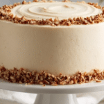 Store the frosted cake covered in the refrigerator for 5-7 days to keep it fresh. Before serving, you can let slices come to room temperature or gently warm them for a few seconds in the microwave for a softer texture.
