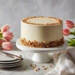 Store the frosted cake covered in the refrigerator for 5-7 days to keep it fresh. Before serving, you can let slices come to room temperature or gently warm them for a few seconds in the microwave for a softer texture.